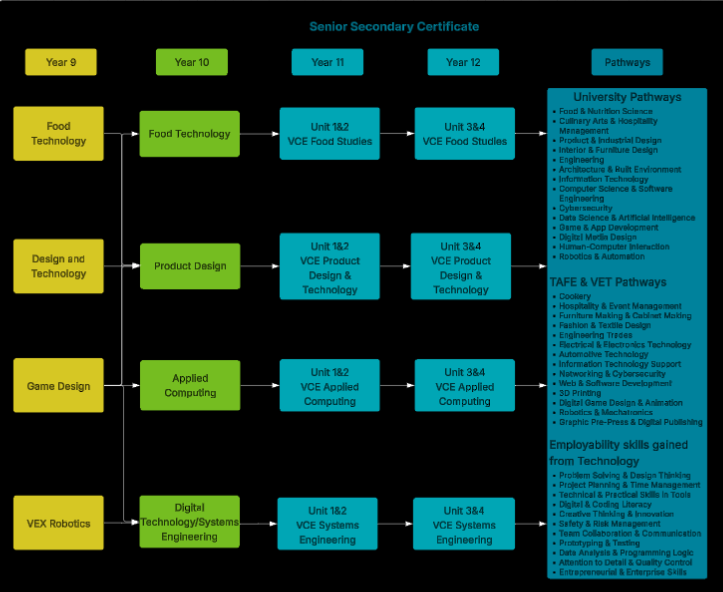 These subjects lay the foundation for future study and careers in fields such as engineering, architecture, trades, IT, software development, hospitality, nutrition, robotics, and product innovation. It’s a clear and simple way to see how choosing Technology subjects in Year 10 can open doors to dynamic, future-focused opportunities in both academic and vocational pathways.
